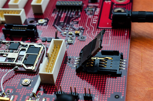 这台 EVT 验证机是如此的原始,以致于组件分布在一块大主板上,即典型的服务于开发人员,以便对各种功能模块进行测试。按照开发板收藏人 theredm68 的说法,出于保密考虑,多数工程人员的开发板根本看不到屏幕,还需要外接显示器。幸运的是,此次展示的这台有液晶屏组件,而且可以点亮。